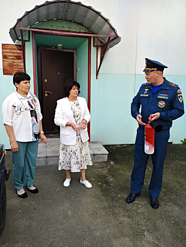 7 августа Кадников Вячеслав Сергеевич, начальник 87 ПСЧ 19 ПСО ФПС ГПС Главного управления МЧС России по Свердловской области и Назаров Алексей Владимирович, заместитель начальника 19 ПСО ФПС ГПС Главного управления МЧС России по Свердловской области провели в муниципальном архиве пожарно-профилактические мероприятия и обучение работников мерам пожарной безопасности на рабочих местах. | |